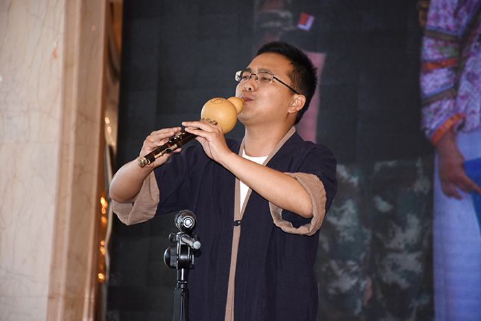 國學(xué)課、音樂課(葫蘆絲)、書法課作為我校的必修課程,在第一場培訓(xùn)講座結(jié)束后的課間小歇,國學(xué)老師兼音樂老師馬文駿、書法教師韋昌毅一起登臺,與家長們見面,讓家長清晰地感知孩子在校學(xué)習(xí)時,到底是什么樣的老師在引領(lǐng)自己的孩子。同時,魯校長還向家長們闡述學(xué)校開設(shè)這幾門課的必要性,一方面是培養(yǎng)孩子的文化素養(yǎng),另一方面是凈化孩子的心靈。受現(xiàn)場氣氛的感染,馬老師還現(xiàn)場為家長們吹奏了一曲葫蘆絲《歡歌炫舞》,絲絲竹聲,或歡快活潑、或悠揚深沉,讓家長們在培訓(xùn)會中學(xué)而不累。