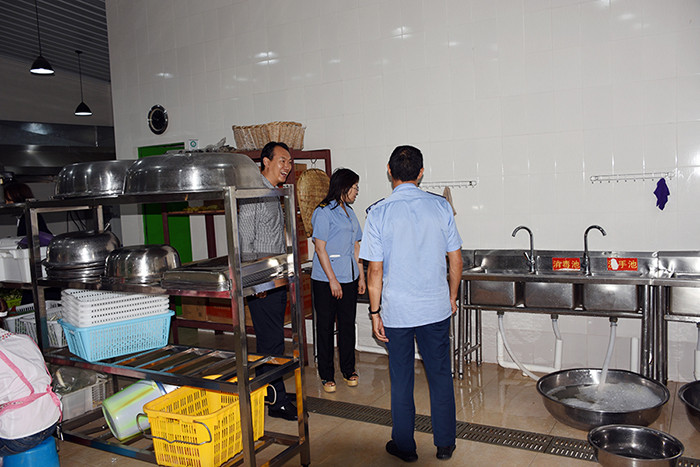 2017年8月8日上午,安寧市市場(chǎng)監(jiān)督管理局連然街道市場(chǎng)監(jiān)督管理所代玉和副所長(zhǎng)等一行4人蒞臨我校檢查指導(dǎo)學(xué)校食品衛(wèi)生安全工作。