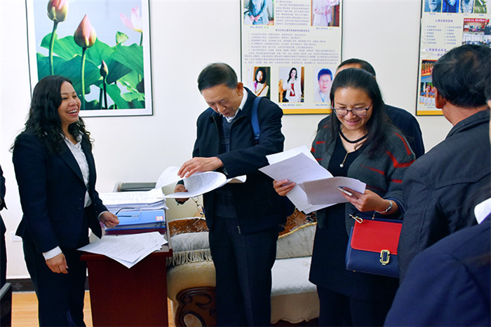 栗主任一行懷著對(duì)學(xué)校的關(guān)切之情,對(duì)校園環(huán)境和硬件設(shè)施建設(shè)進(jìn)行了查看,重點(diǎn)聽取了學(xué)校法治建設(shè)的工作情況介紹。在走訪學(xué)校心理輔導(dǎo)室時(shí),非常認(rèn)真地翻閱心理輔導(dǎo)工作的記錄情況,并與我校心理輔導(dǎo)首席專家周榕樺進(jìn)行了深入細(xì)致的交流。隨后還在多媒體教室觀看了教學(xué)活動(dòng)短片。