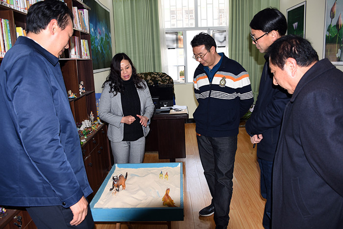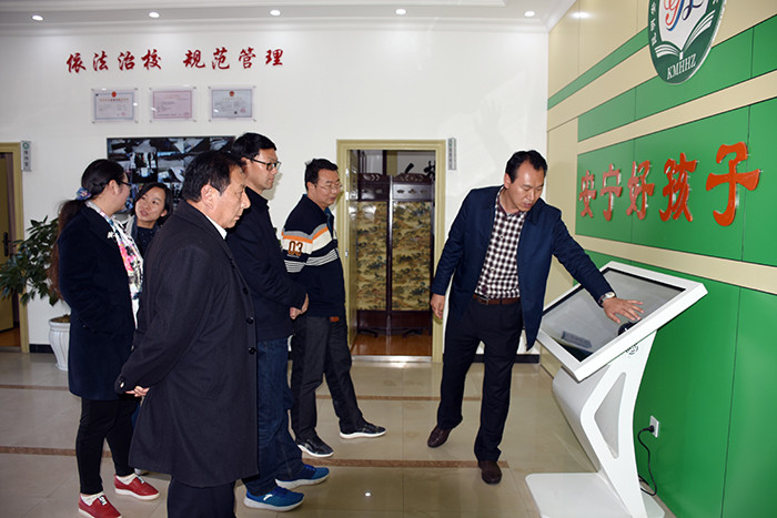 毛局長(zhǎng)一行在的陪同下,依次參觀了學(xué)校辦公樓、監(jiān)控安防設(shè)備、食堂餐廳、學(xué)生宿舍、心理輔導(dǎo)室等,還特地查閱了學(xué)校心理輔導(dǎo)工作記錄情況,并與心理輔導(dǎo)老師們進(jìn)行了工作交流;隨后,在多媒體教室觀看了教學(xué)活動(dòng)短片。