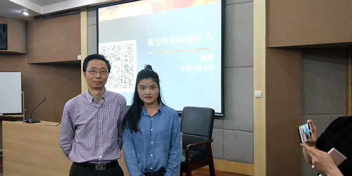 學(xué)校法學(xué)教師李月與中國(guó)人民大學(xué)心理學(xué)系教授雷靂(左一)合影留念
