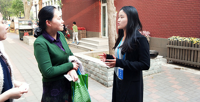 學(xué)校法學(xué)教師李月與最高人民檢察院未成年人檢查工作辦公室一處處長(zhǎng)張寒玉(中)交談