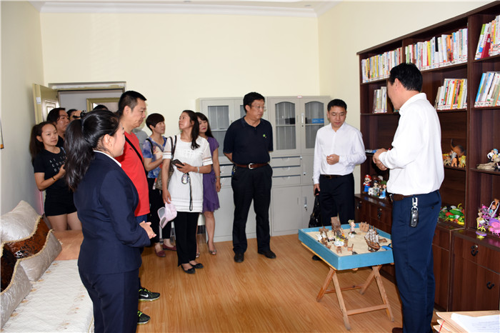考察組一行首先參觀了學(xué)校辦公樓、食堂餐廳、學(xué)生宿舍、心理輔導(dǎo)室等硬件設(shè)施。隨后,在多媒體教室觀看了教學(xué)活動短片,并和我校的孩子們合影留念。其間,就學(xué)校的辦學(xué)理念、發(fā)展歷程、管理模式、辦學(xué)特色、辦學(xué)戰(zhàn)略定位、辦學(xué)效益等多項內(nèi)容逐一做了詳細(xì)介紹。