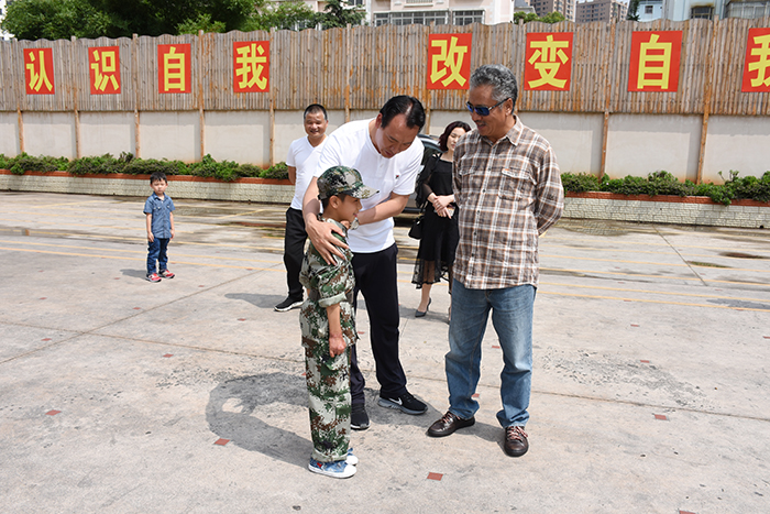 當(dāng)看著接待室那面印著老撾文的錦旗,王總既感親切,又非常驚嘆學(xué)校的影響力。原來王總的企業(yè)有很大一部分業(yè)務(wù)輻射到老撾國。長此以往,老撾成了他的第二個故鄉(xiāng)。在安寧這個美麗、祥和的全國文明城市,他也從未想過學(xué)校的生源除了省內(nèi)、國內(nèi)各地,竟也延伸到了國外;當(dāng)看到學(xué)校墻面醒目地掛著“每個孩子都是天才,不能用爬樹的能力來判斷一條魚的才干”的辦學(xué)理念時,王總更是對學(xué)校獨(dú)樹一幟的辦學(xué)特色連連稱贊;當(dāng)走進(jìn)宿舍樓,看著特別的校園文化,孩子們宿舍里溫馨的大床、整齊的被子,他更是對學(xué)校暖心全面的德育教育和孩子們良好的生活習(xí)慣稱贊不已;當(dāng)看著操場上最小的“小兵”精神抖擻地站著軍姿,王總情不自禁地走近和他親切交流,孩子也甜甜地叫著“爺爺好”,他的乖巧可愛,讓王總特別欣慰,并與他開心擊掌,鼓勵他好好學(xué)習(xí);當(dāng)?shù)弥獙W(xué)校辦學(xué)八年多來,成功改變了數(shù)千名孩子時,更是給予了學(xué)校高度評價。