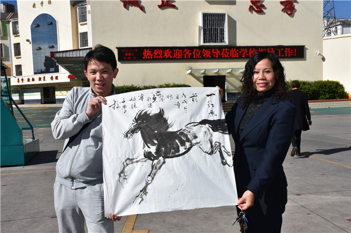 書畫展演尾聲,孩子們還向老領(lǐng)導(dǎo)們展示了日常所學(xué)的葫蘆絲,聲聲絲竹聲,打動了在場的領(lǐng)導(dǎo)。最后,老領(lǐng)導(dǎo)們把自己所寫的書畫作品一一贈給孩子們,勉勵他們要好好學(xué)習(xí),立志高遠!