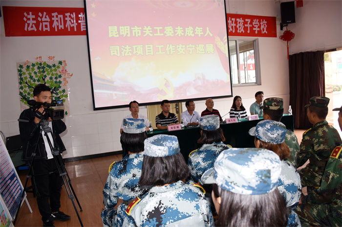 活動開始,趙主任首先就未成年人司法項目工作在預防青少年犯罪和青少年觸法權(quán)益維護工作中的重要性,以及政府在開展未成年人司法保護工作中的努力和成效,向大會作了精彩致辭。隨后,趙主任還對孩子們作了殷切勉勵:“這是我第四次來好孩子學校,雖然每一次來基本都是新面孔,但每一次來給我的印象都很深,很感動。我曾是一名軍人,孩子們現(xiàn)在端正的坐姿、整齊的鼓掌以及良好的精神面貌,都讓我無比的自豪和欣慰,你們都是好孩子,出去也會是一個好兵。希望孩子們珍惜好人生的經(jīng)歷,珍惜好在好孩子的這段時光,努力提升自己,樹立遠大目標,將來做一個德才兼?zhèn)涞娜!?br style="font-family: ;"> 隨后,趙主任一行在我校魯植校長的陪同下,深入學校教學樓、宿舍樓等實地查看了校園環(huán)境,并在多媒體教室觀看了學校教學活動短片。其間,魯校長向趙主任詳細匯報了學校近期的各項教育教學工作開展情況。聽后,趙主任對我校的各項工作給予了高度肯定,尤其是夸贊學校法治宣傳教育開展得有聲有色,每年都有不一樣的新內(nèi)容呈現(xiàn)出來,無愧于“昆明市青少年法治教育基地”這個光榮稱號。