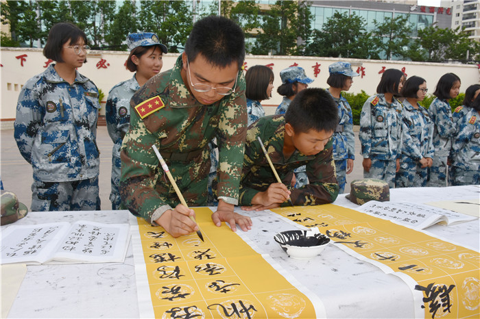 活動并未因此落下帷幕,而是進(jìn)入了一場視覺與聽覺的盛宴,我校軍事方隊表演的《隊列》,拉開了聯(lián)誼匯演的序幕。孩子們標(biāo)準(zhǔn)的軍事動作,既是表演,也是日常訓(xùn)練的檢驗;緊接著表演的手語《跪羊圖》,也讓我們看到了孩子們感恩的溫情內(nèi)心世界;隨后,安寧關(guān)工委選送的笛子獨奏《我是一個兵》,讓大家耳目一新,歡快中不乏堅定;《太極扇》孩子們更是看得津津有味,只見表演者動作時而輕柔舒緩, 時而剛?cè)嵯酀?jì),舉手投足,展示著中國太極功夫以柔克剛、虛實分明、輕靈沉穩(wěn)的意境;葫蘆絲獨奏悅耳的絲竹聲,更是無形間浸潤著孩子們的心田。其間,我校孩子們也用平時所學(xué),用葫蘆絲合奏《荷塘月色》、女兵操《新時代》、第三套《擒敵拳》等向現(xiàn)場的各位領(lǐng)導(dǎo)展示著小軍人的風(fēng)采,得到了領(lǐng)導(dǎo)們的一致好評。