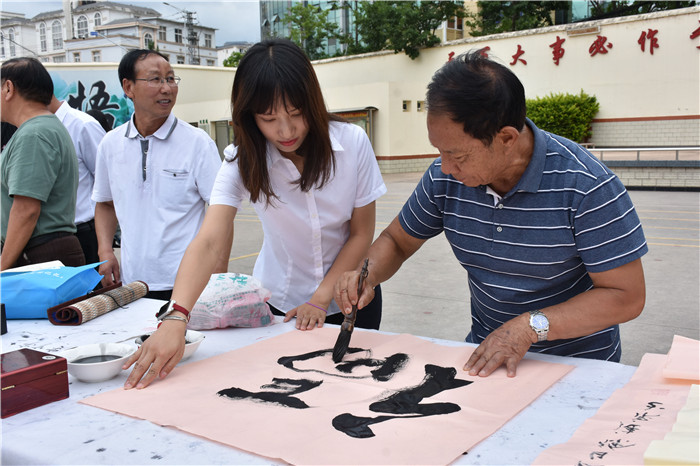 2020年6月27日上午,在安寧市關(guān)工委常務(wù)副主任李庭貴的帶領(lǐng)下,安寧市“五老”領(lǐng)導(dǎo)鄧成列(省勞模)、山萬偉、楊貴福、楊長生、徐繼泉(中國書法家),安寧市詩書畫二組朱正才等一行近30名退休老領(lǐng)導(dǎo)、老干部與我校共同開展“心系下一代,牽手筑未來”活動。