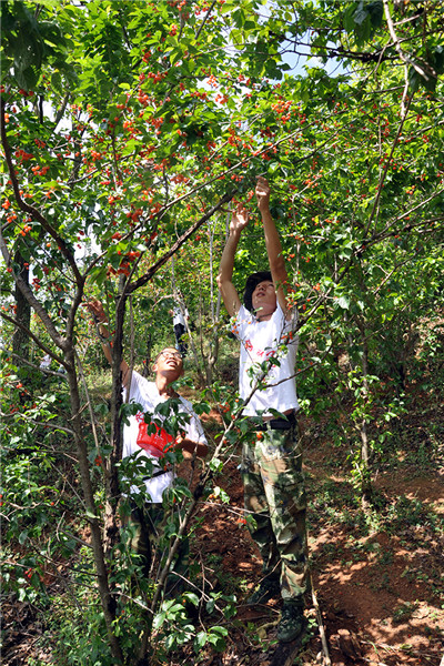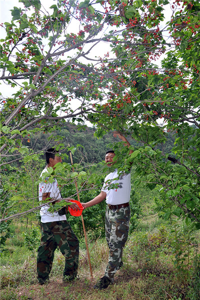 2016年5月4日上午,我校副校長(zhǎng)兼總教官毛積敏帶領(lǐng)部分師生到安寧青龍界牌村櫻桃園為學(xué)生采摘櫻桃。