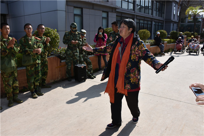 到了敬老院同學(xué)們立馬給老人們送上了蘋果,還主動(dòng)到老人身邊扶著老人散步、推著輪椅陪老人看風(fēng)景、陪老人們聊天、給老人們按摩,一張張稚嫩的笑臉和一雙雙慈祥的目光碰撞出“家”一樣的和諧、溫馨。聽說老人們喜歡看表演,孩子們就為老人們唱起了軍歌、表演了軍體拳、跳手語舞、演奏葫蘆絲等。豐富的節(jié)目博得了老人們的好評(píng),掌聲不斷響起,幾位老奶奶也開心地送上了自己的拿手表演,整個(gè)院兒里充滿了掌聲和歡笑聲。