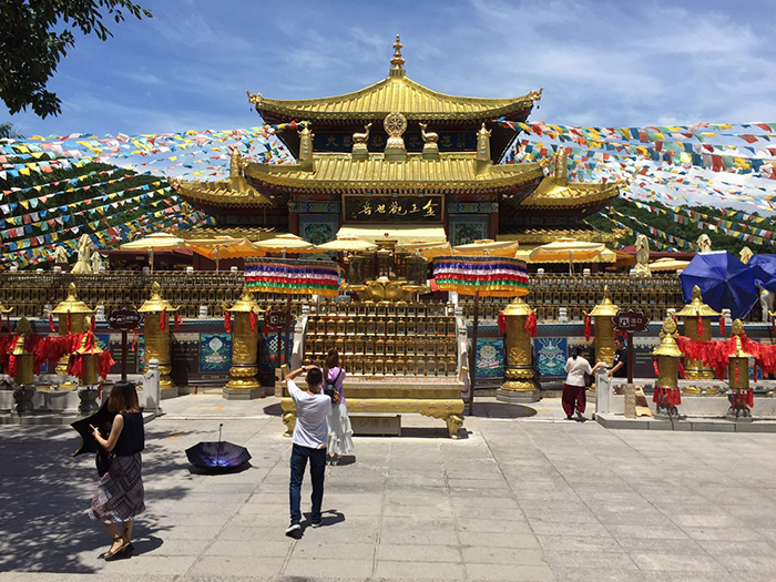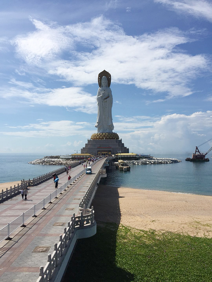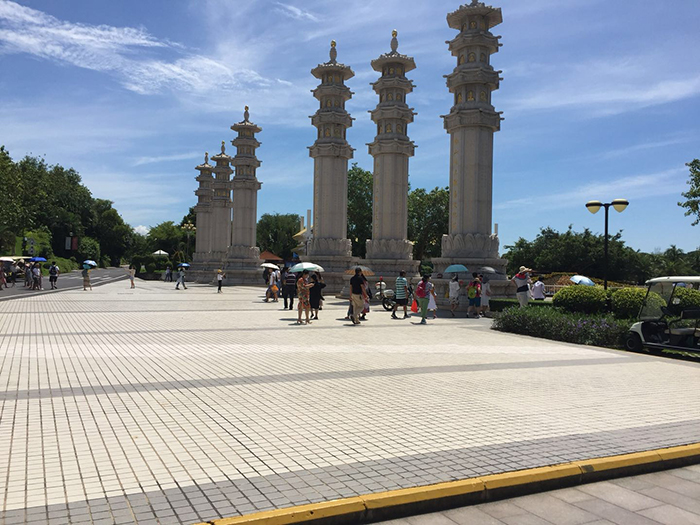 9日上午,第一站就是南海觀音。到了這里,大家頗為震撼。108米高的海上觀音圣像矗立在蔚藍(lán)色的大海之上,巍峨壯觀,實乃世界造像之最。敬建工程因其規(guī)模宏偉、意義殊勝、佛理底蘊豐富,被譽為世界級、世紀(jì)級的佛事工程。那圣潔的白與純凈的藍(lán)融在一起,讓人不禁想到“海天佛國” 四個字!