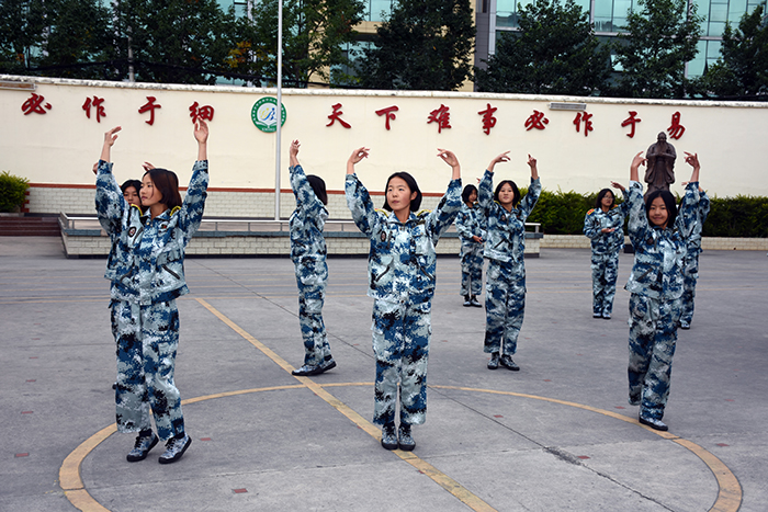 分列式的同學(xué)們步伐鏗鏘、隊(duì)形整齊、口號(hào)嘹亮、自信昂揚(yáng),展現(xiàn)了良好的精神風(fēng)貌;擒敵拳方陣的同學(xué)們也毫不遜色,剛勁有力的踢腳勾拳,嫻熟連貫的軍體動(dòng)作,展現(xiàn)了頑強(qiáng)拼搏和勇做時(shí)代弄潮兒的決心;女生方隊(duì)的手語操《三德歌》,更是把孝德、誠德、愛德的中華民族優(yōu)秀傳統(tǒng)美德表現(xiàn)得淋漓盡致。大家不禁心潮澎湃,日常的苦與累,值!