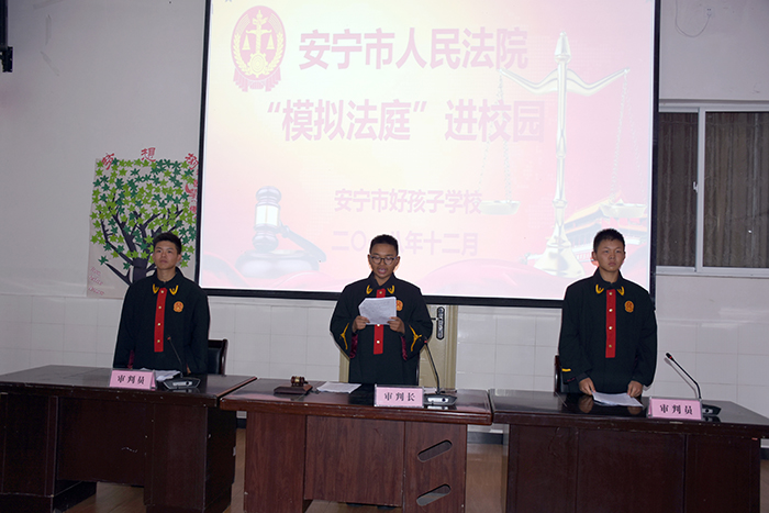 2018年12月15日上午,在安寧市人民法院道永升法官的指導(dǎo)下,在法院執(zhí)行局干警楊亮、劉沖、張杰芳的支持下,我校與安寧市人民法院聯(lián)合舉辦了“模擬法庭”進(jìn)校園庭審教育活動(dòng)。