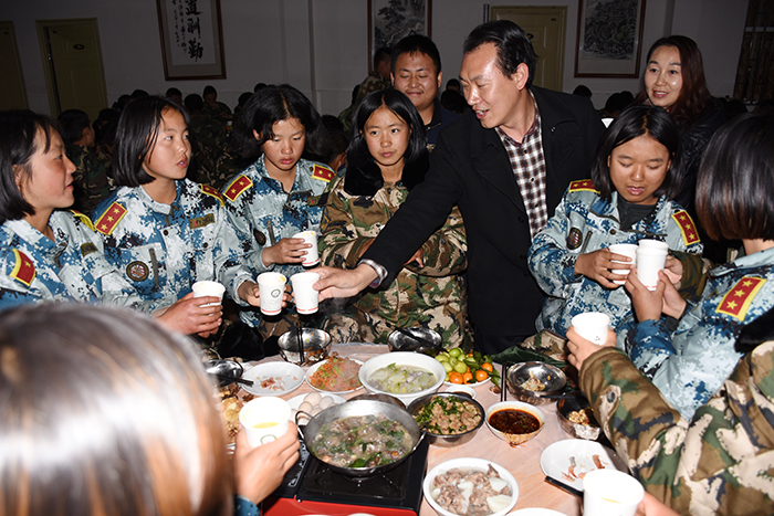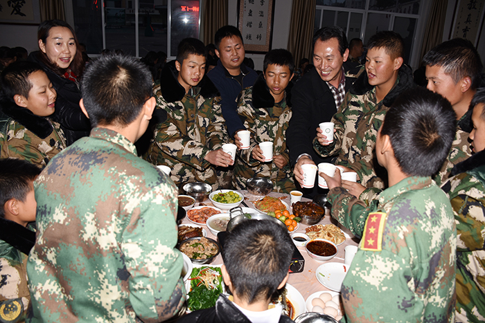 周雪和趙艷老師的愛人因?yàn)樵诓筷?duì)工作和正在部隊(duì)工作,看到眼前的迷彩,不禁想到了自己的軍營生活,特地囑咐孩子們要在這里好好學(xué)習(xí),早日回家,做一個(gè)孝敬父母、對社會(huì)有用的人才。趙艷老師的愛人還表示,如果將來有學(xué)生能到他所在的部隊(duì)服役,那他一定會(huì)熱烈相迎,在部隊(duì)做戰(zhàn)友,做兄弟,共同為國家出力。情真意切的一席話,引得孩子們更加向往軍營生活。