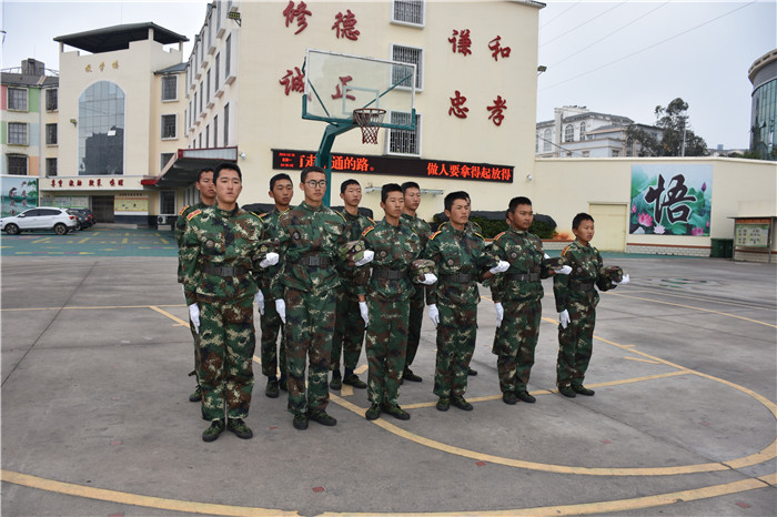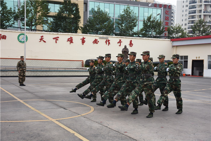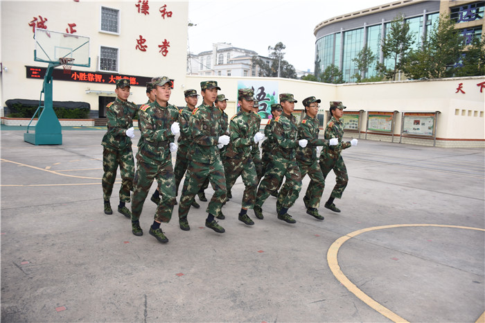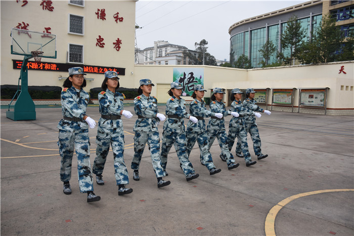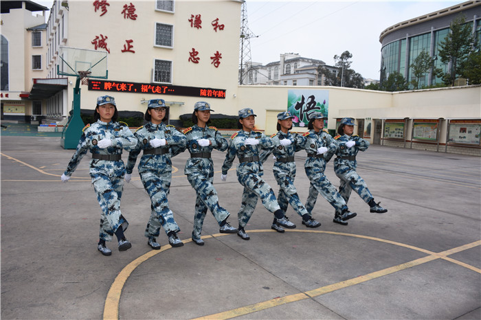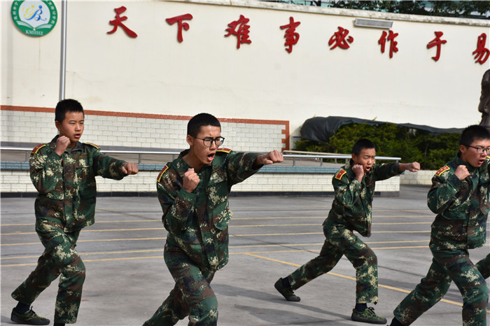在基本的隊(duì)列表演完畢后, 伴著激揚(yáng)的旋律,女生方隊(duì)進(jìn)行了《大夢想家》手語操和《青春集合在軍旗下》女兵操表演?!她們一個(gè)個(gè)精神抖擻,柔中帶剛,舉手投足釋放著青春的活力,贏得了師生陣陣熱烈的掌聲。伴隨著震耳欲聾的吶喊聲,男生方隊(duì)出場了!他們個(gè)個(gè)生龍活虎,一招一式,剛勁有力,為我們淋漓盡致地完整展示了擒敵拳、棍術(shù)等,充分展現(xiàn)了當(dāng)代小軍人的風(fēng)采。