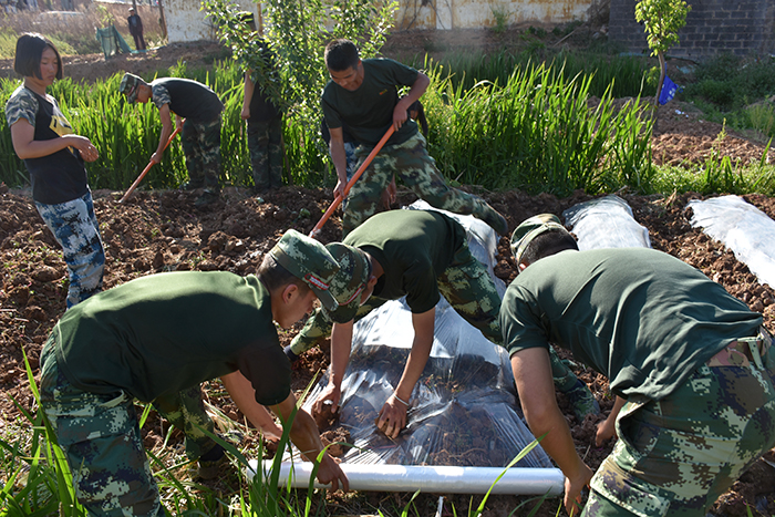 孩子們別提有多高興了,一個個連跑帶顛地離開學校來到菜地里,開心地干起活來。孩子們既有分工又合作,有的挖地、有的割草、有的摘豆、有的拔菜。等一切準備就緒,就開始了全員種瓜,只見有的履溝、有的打塘、有的播種、有的澆水、有的蓋薄膜......個個充滿了干勁,忙碌著,商量著,菜園里頓時變得熱鬧起來,一幅緊鑼密鼓編織的春耕圖出現(xiàn)在大家眼前。
