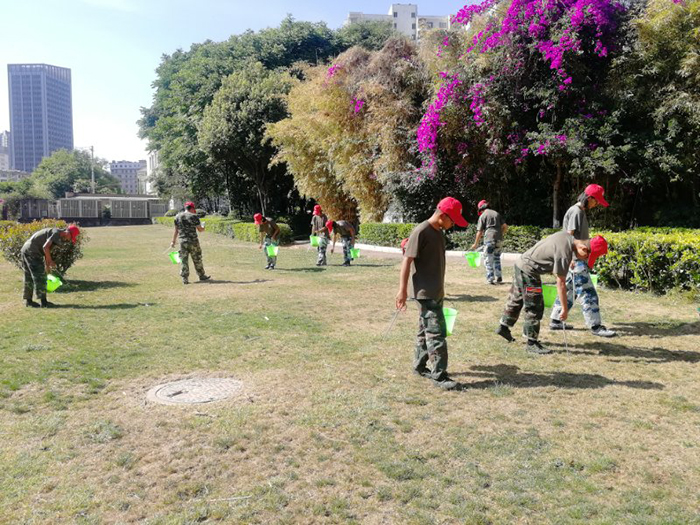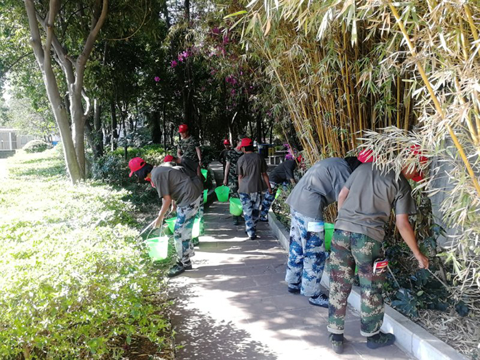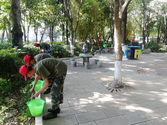 在柳樹花園廣場,孩子們頭戴“小紅帽”, 首先在團旗下進行了莊嚴宣誓,隨后在老師和社區(qū)工作人員的帶領下,熱火朝天地拿起火鉗、水桶等工具,對文化活動廣場、草坪里的樹枝、果皮、紙屑、煙頭、白色垃圾等雜物進行了一次徹底的清理。經過2個多小時的勞動,休閑廣場的整體環(huán)境得到了明顯的改善?粗约旱膭趧映晒,大家紛紛露出欣慰的笑容。