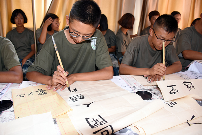 書法藝術(shù)是中華民族特有的藝術(shù)瑰寶,它是與文字結(jié)合最緊密的藝術(shù),宗旨:點在聚墨、主在領(lǐng)悟、重在交流、適在運用!學生在墨香中自覺練習書法,不僅為校園文化建設(shè)添上濃墨重彩的一筆,也為學校推進學生綜合素質(zhì)發(fā)展打下了堅實的基礎(chǔ)。