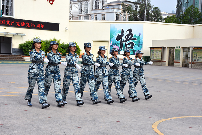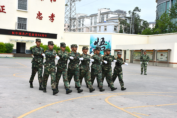 2019年7月1日,在中國共產(chǎn)黨成立98周年之際,我校全體師生以軍訓(xùn)匯報表演的形式向黨獻(xiàn)禮。