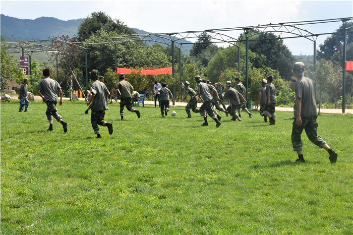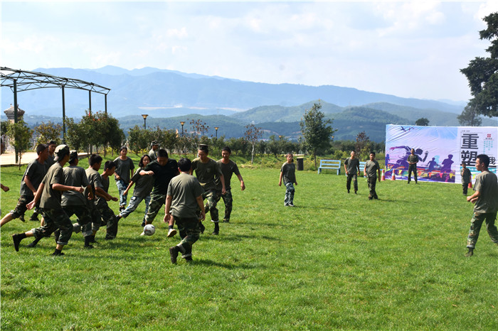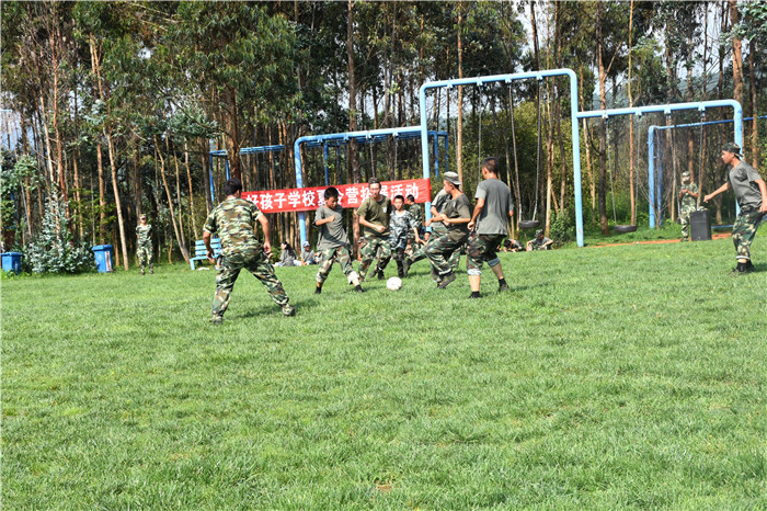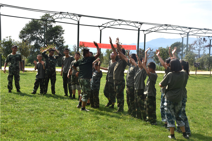 飯后稍作休整,一場足球過后,便是此行的重點活動——戶外拓展訓(xùn)練。拓展活動在老師的耐心講解和簡短的“戰(zhàn)前”熱身運動后拉開了帷幕。孩子們分成兩隊比拼,在各隊隊長的帶領(lǐng)下,伴隨了各隊振奮人心、催人奮進的口號和加油聲,同學(xué)們陸續(xù)挑戰(zhàn)了由學(xué)校老師精心準備的不倒森林、巨人腳、珠行萬里、鼓動人心等團隊項目;顒又,孩子們始終保持飽滿的熱情、高昂的斗志、認真的態(tài)度,積極參與,用心體會,努力完成著每一個項目。雖然在挑戰(zhàn)過程中,有的孩子有過膽怯、有過害怕,但在老師的幫助和隊友們響亮的加油聲中,他們沒有退縮、沒有放棄,憑借著頑強的毅力、團結(jié)協(xié)作的精神一一通過了重重難關(guān)。