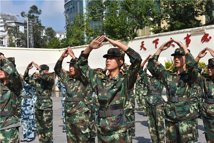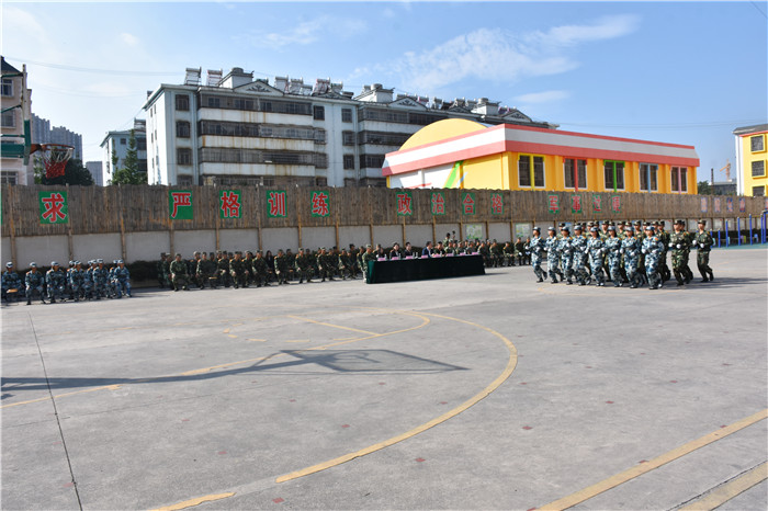 隨后,進(jìn)行了迎校旗儀式。緊接著,在洪亮的分列式進(jìn)行曲中,學(xué)生們穿著統(tǒng)一的作訓(xùn)服,排著整齊的隊(duì)伍,喊著嘹亮的口號,昂首闊步、英姿颯爽地依次走過主席臺接受檢閱,盡顯青春風(fēng)采。