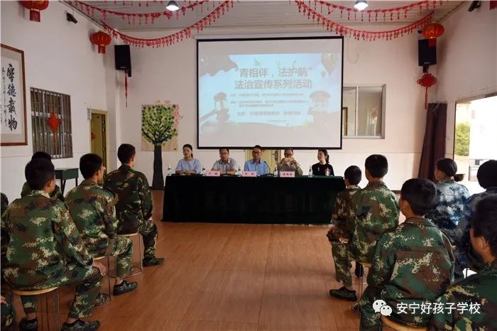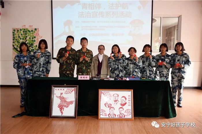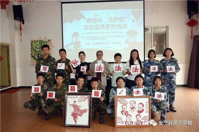 2020年8月24日上午,由共青團安寧市委、安寧市未司辦主辦,安寧市向日葵青少年事務服務中心、安寧市志愿服務發(fā)展促進會及安寧好孩子學校承辦的“青相伴,法護航”法治宣傳系列活動在我校舉行。安寧市向日葵青少年事務服務中心主任李曼麗,安寧市非物質(zhì)文化遺產(chǎn)剪紙傳承人耿明府,安寧市志愿服務發(fā)展促進會會長、向日葵青少年事務服務中心副主任李佳妮,安寧市未成年司法項目專干萬瑩,寧湖律師事務所李濤律師等領導一行5人出席了本次活動。