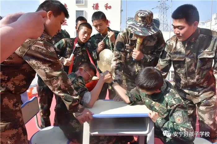 同學(xué)們摩拳擦掌坐到了指定位置,開始“戰(zhàn)斗”起來,每位選手都緊緊地握住對方的手,卯足了勁往自己這邊扳。有的由于力量懸殊,很快敗下陣來;有的趁對方不備,猛往自己懷中一壓,還沒等對方反應(yīng)過來,手已經(jīng)被壓在桌上了;有的相持不下,鼓著腮、瞪著眼,臉漲得像個紅蘋果;有的不甘示弱,拼命想把對方的手壓下去,無奈還是沒有還手之力。