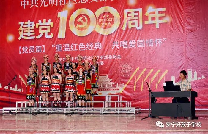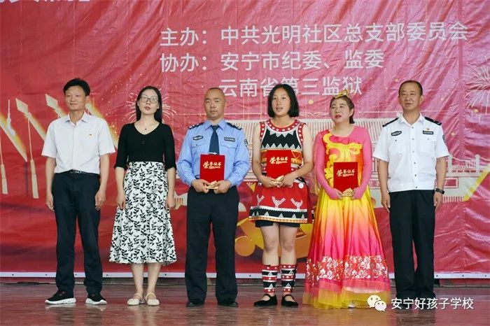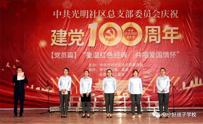 為隆重慶祝中國共產黨百年華誕, 2021年5月28日下午,我校參加由中共光明社區(qū)支部委員會主辦,安寧市紀委、監(jiān)委,云南省第三監(jiān)獄協(xié)辦的慶祝中國共產黨建黨100周年系列活動之“重溫紅色經典•共唱愛國情懷”紅歌比賽活動。