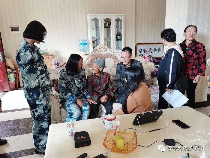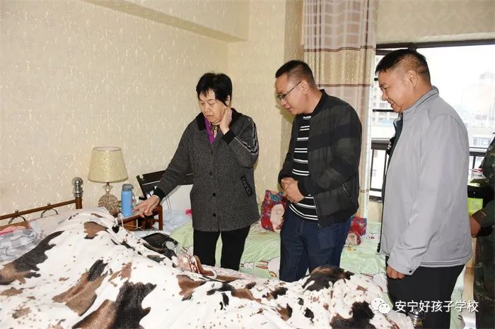 由于時(shí)間關(guān)系,雖然每到一戶看望老人的時(shí)間不是很長,但師生們的一聲問候,幾句細(xì)語,微不足道的生活用品.....這些小小的舉動,卻像大大的太陽溫暖著老人們的心,讓老人們眼里不時(shí)泛起了淚花,緊握師生的手遲遲不愿松開!