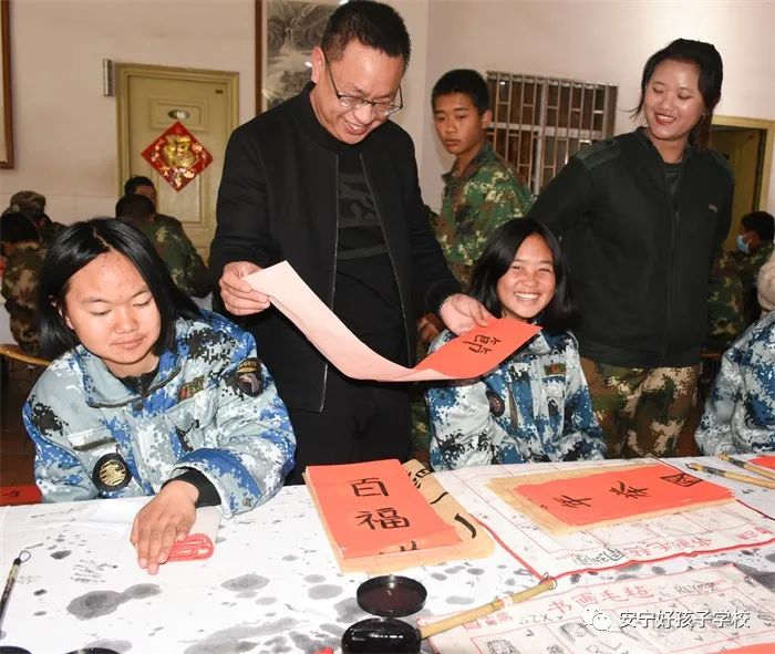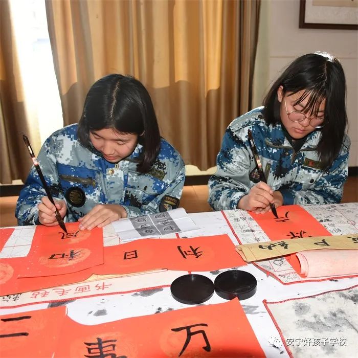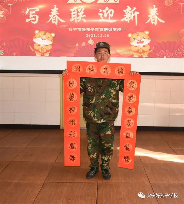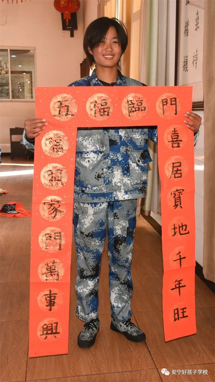 同學們在書寫之余,還紛紛拿起自己的作品,進行拍照留念,并把新一年的美好祝福絡繹不絕地相繼寄回家,讓春聯(lián)帶著祝福溢滿自己的家園。
