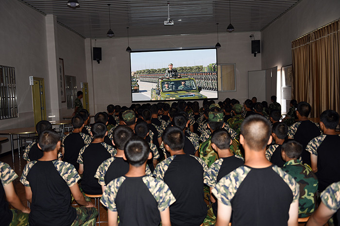 學(xué)生在多媒體教室觀看建軍90周年閱兵式