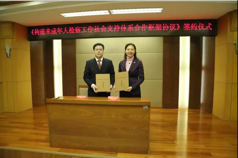 會(huì)上,最高人民檢察院、共青團(tuán)中央簽署了《關(guān)于構(gòu)建未成年人檢察工作社會(huì)支持體系合作框架協(xié)議》;中央綜治辦、中央網(wǎng)信辦、最高人民法院、教育部、民政部、全國婦聯(lián)和江蘇省綜治委“預(yù)青”專項(xiàng)組、廣西柳州市委政法委負(fù)責(zé)同志作了交流發(fā)言。