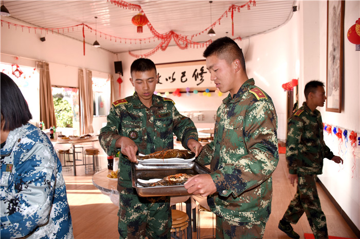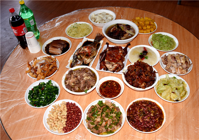 為了準(zhǔn)備豐富的年夜飯,老師和同學(xué)們從上午就開始忙碌著,一起幫學(xué)校廚師們打下手。同學(xué)們有的撿菜,有的洗碗,有的洗菜......到了下午,一盤盤色香味俱全的菜肴就呈現(xiàn)在大家面前,伴隨著隆隆的鞭炮聲,年夜飯開始了。