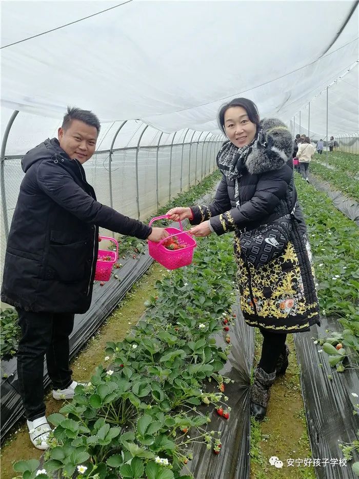 下山后路過草莓園,又怎能錯(cuò)過采摘草莓的樂趣呢?大家有序走進(jìn)大棚,一股草莓的香氣便撲面而來,滿目綠油油的一片,顆顆粒大誘人、飽滿紅艷的草莓躲在長長的壟溝里,貌似和我們比賽看誰的隊(duì)伍齊呢,也好像在列隊(duì)歡迎我們!一步兩步,是采摘草莓的步伐,穿梭在園里,一定要找到個(gè)頭最大的才肯罷休。比起超市里整齊的包裝,親自去園區(qū)采摘才是樂趣無窮。盡管天寒地凍,但老師們通紅的臉上寫滿的卻是親近自然的滿足。