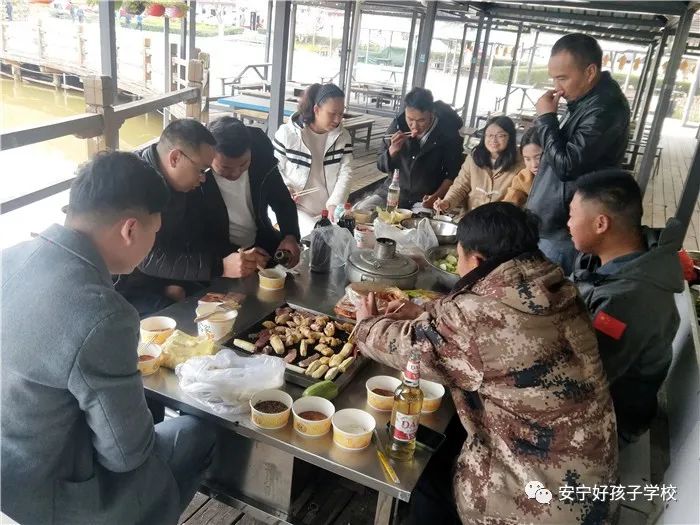 玩得有些疲憊了,索性找個(gè)景色秀美的農(nóng)莊停留下來,開始了燒烤狂歡。每個(gè)人都大展身手,各顯神通。撿、洗、切、煮、烤等工作,大家默契配合、互相照顧。天氣寒冷,男老師在一舉一動(dòng)中更是體現(xiàn)了紳士風(fēng)度,格外照顧女同事,不但切、烤包攬,就連撿、洗都爭搶著做?臼炝,更是互相把好吃的往對方碗里夾,一個(gè)勁地說著“快吃,多吃點(diǎn),辛苦啦”,充分展示了“工作中我們是默契的隊(duì)友,生活里我們是溫暖的朋友”這一良好氛圍。吃飽喝足后,大家又開始露天KTV縱情高歌,或者來個(gè)“廣場舞”,就地取材的老師們,把鍋碗瓢盆臨時(shí)當(dāng)成了樂器,給大家即興伴奏,F(xiàn)場精彩不斷,歡聲笑語不斷,同事們的情誼也隨著這笑聲逐漸升華。