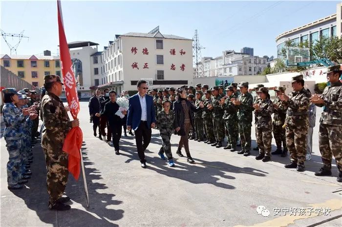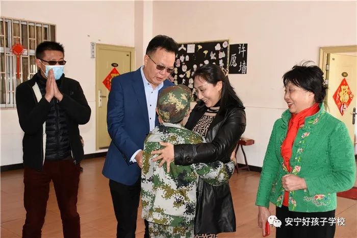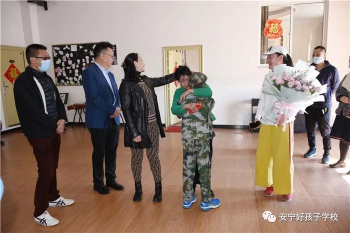 在溫情的音樂聲中,當(dāng)小剛同學(xué)轉(zhuǎn)身看到一大家人站到自己的身后時,激動地從隊列中飛奔到爸爸媽媽懷里,緊緊和他們相擁,他更沒想到會有那么多親人來接自己回家!在和親人的久違擁抱中,他的眼里泛起了晶瑩的淚花。