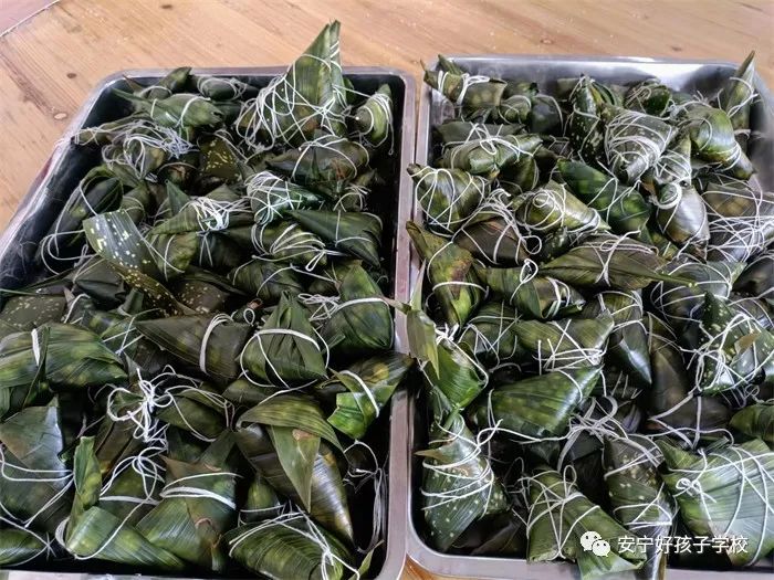 3日上午,學(xué)校餐廳歡聲笑語,熱鬧非凡。孩子們?cè)诶蠋煹膸ьI(lǐng)下,熱火朝天地清洗粽葉,隨后,展開了如火如荼的包粽子活動(dòng)。在老師的精心指導(dǎo)下,孩子們忙碌地穿梭在一片片翠綠的粽葉間,“一折葉、二盛料、三壓實(shí)、四包裹、五扎繩”......有的孩子包粽子技術(shù)嫻熟,在他們的巧手下,很快一個(gè)個(gè)精美的粽子就誕生了;有的包粽子心切,好不容易包好了粽葉,糯米又漏出來,亦或是裝好米又包好粽葉,但線卻怎么也扎不緊,急得在那里直呼“老師,快來幫幫我”.......盡管技術(shù)參差不齊,但大家都學(xué)得有模有樣。不一會(huì)兒,一個(gè)個(gè)形態(tài)各異的粽子便躍然桌上。有三角狀的,有牛角型的,還有長條型、正方形和糖果型的...... 粽子的外面是粽葉,里面是粽餡,一“包”一“容”,呈現(xiàn)給我們的便是“包容”。