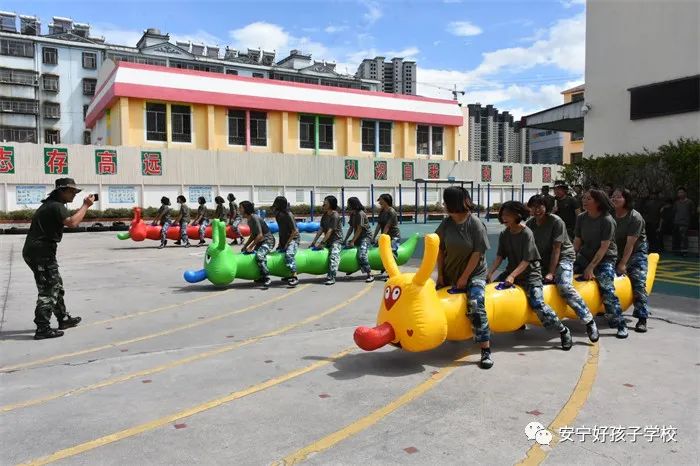 賽龍舟結(jié)束后,同學(xué)們意猶未盡,接著進(jìn)行了“毛毛蟲競(jìng)走”。參賽隊(duì)伍8人一組,后面的同學(xué)拉著前面同學(xué)的衣服成一列蹲下前行,用時(shí)最少抵達(dá)終點(diǎn)者勝出。同學(xué)熱情高漲,一邊高唱“團(tuán)結(jié)就是力量”,一邊奮力前行,同心協(xié)力沖向終點(diǎn)。