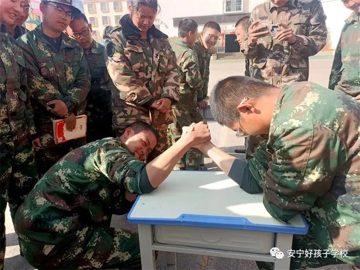 有的由于力量懸殊,很快敗下陣來;有的趁對方不備,猛往自己懷中一壓,還沒等對方反應(yīng)過來,手已經(jīng)被壓在桌上了;有的相持不下,鼓著腮、瞪著眼,臉漲得像個紅蘋果;有的不甘示弱,拼命想把對方的手壓下去,無奈還是沒有還手之力。場上的啦啦隊員,有的大聲喊加油,有的急得直跺腳,有的不停地說道“他太強了,簡直是秒殺!”