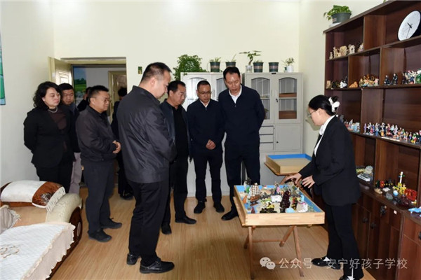 李書記一行懷著對學校的關心、關切之情,親切地走進學校的辦公樓、教學樓、心理輔導室、學生宿舍等進行全面查看。在走訪心理輔導室時,還耐心聽取了我校心理輔導老師解讀學生沙盤案例,深入了解學校心理輔導工作的開展情況。隨后,在多媒體教室觀看了學校教學活動短片,更直觀、全面地了解了學校的辦學情況。