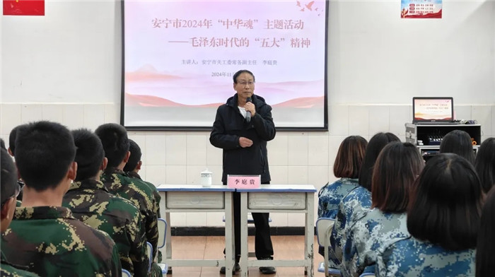 普法講座結(jié)束,李主任為大家進(jìn)行了毛澤東時(shí)代的“五大”精神——“中華魂”主題教育宣講。李主任深情回顧了毛澤東時(shí)代的光輝歷程,闡述了“五大”精神的深刻內(nèi)涵和時(shí)代價(jià)值。他強(qiáng)調(diào),新時(shí)代青少年要繼承和發(fā)揚(yáng)“五大”精神,堅(jiān)定理想信念,勇于擔(dān)當(dāng)作為,為實(shí)現(xiàn)中華民族偉大復(fù)興的中國夢(mèng)貢獻(xiàn)青春力量。