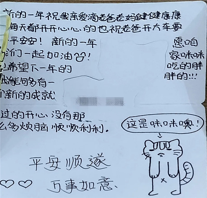 在“我的新年祝!辟R卡上,孩子們鄭重地寫(xiě)下了對(duì)親人、好友的誠(chéng)摯祝福,也寫(xiě)下了對(duì)自己新一年的激勵(lì)與期許。