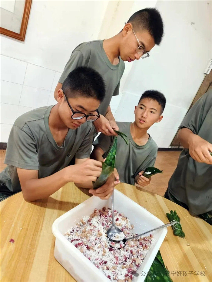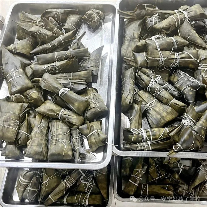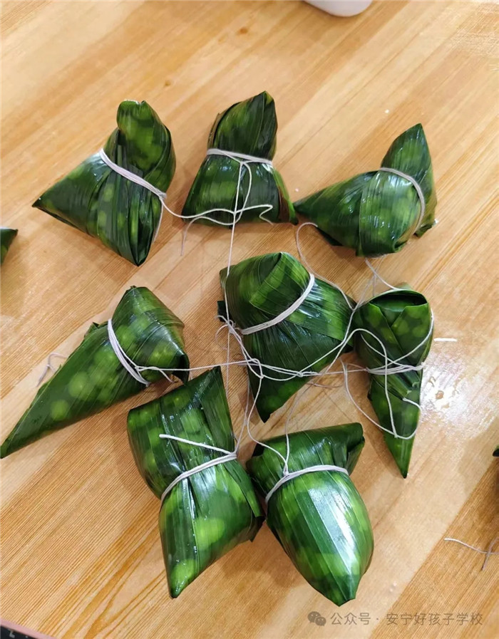 上午,學校餐廳歡聲笑語,熱鬧非凡。孩子們在老師的帶領(lǐng)下,熱火朝天地清洗粽葉,隨后,展開了如火如荼的包粽子活動。在老師的精心指導下,只見孩子們雙手靈巧地穿梭在翠綠的粽葉間,按照“一折葉、二盛料、三壓實、四包裹、五扎繩”的步驟,將香甜的糯米包裹進粽葉,再用細細的棉線纏繞扎實。不一會兒,一個個形態(tài)各異、大小不一的粽子便誕生了。這些飽含美好祝福的粽子,不僅是孩子們勞動的成果,更承載著他們對傳統(tǒng)文化的熱愛。