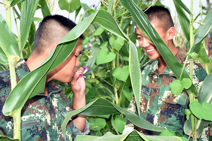 在看那一個個玉米棒子,一個比一個大,一個比一個好。孩子們有的看看這個,看看那個,不知道該掰哪個好;有的不知如何判斷成熟,干脆從“胡須”處撕開一個口,眼見為實;有的看著玉米長勢喜人,抑制不住自己,剝開一個就吃起來。一旁的老師連連說道,生玉米不能吃,小心吃壞肚子,但孩子們卻趁老師不注意,偷偷地啃上一口,猶如勝利的將軍。
