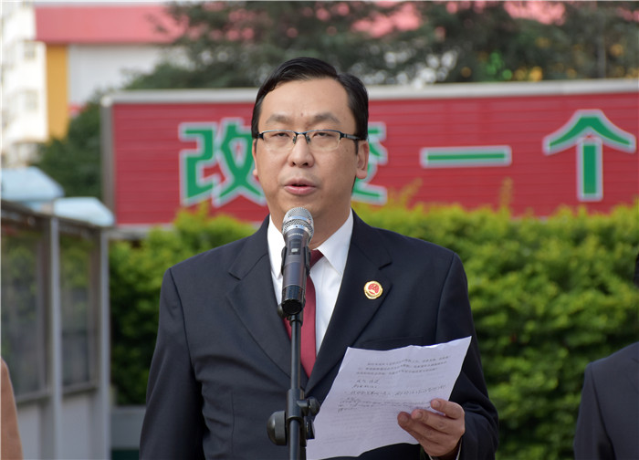 揭牌儀式上,魯校長(zhǎng)介紹了出席活動(dòng)的領(lǐng)導(dǎo)并致歡迎詞;隨后邀請(qǐng)了楊志剛檢察長(zhǎng)與盧敏副局長(zhǎng)為學(xué)校揭牌,全場(chǎng)響起熱烈的掌聲;隨后,楊檢察長(zhǎng)發(fā)表了熱情洋溢的講話:“今天很高興!安寧市人民檢察院與好孩子學(xué)校7月簽訂的《未成年人陪護(hù)教育基地共建協(xié)議》,今天終于落地揭牌了。檢校合作,是深入貫徹習(xí)近平總書(shū)記新時(shí)代中國(guó)特色社會(huì)主義思想的重要舉措;是落實(shí)中央《關(guān)于加強(qiáng)專門學(xué)校和專門教育工作意見(jiàn)》的具體體現(xiàn);是促進(jìn)未成年權(quán)益保護(hù)和犯罪預(yù)防體系建設(shè)的有益嘗試;更是促進(jìn)未成年人健康成長(zhǎng)的有力保障。專業(yè)的人做專業(yè)的事,好孩子學(xué)校辦學(xué)成績(jī)顯著,我們給予高度肯定!感謝好孩子學(xué)校對(duì)我市未檢工作和未成年人權(quán)益保護(hù)做出的重大貢獻(xiàn)。我們相信,基地的建設(shè),對(duì)引導(dǎo)我市廣大青少年樹(shù)立法治理念,減少違法犯罪和維護(hù)自身合法權(quán)益都具有極其重要的里程碑意義。做好未成年犯罪預(yù)防、幫扶,使命光榮,任務(wù)艱巨。今天的儀式只是個(gè)開(kāi)頭,希望我們能夠以此為契機(jī),在接下來(lái)的工作中,本著共建共贏的合作原則,充分發(fā)揮雙方的資源優(yōu)勢(shì),努力把合作引向深入,確;匕l(fā)揮實(shí)效,為未成年人的健康成長(zhǎng)創(chuàng)造良好的社會(huì)環(huán)境,為建設(shè)平安安寧作出更大貢獻(xiàn)!”